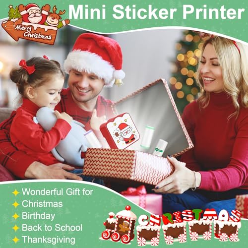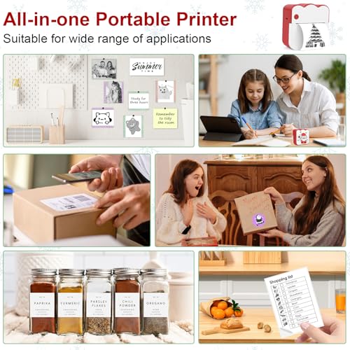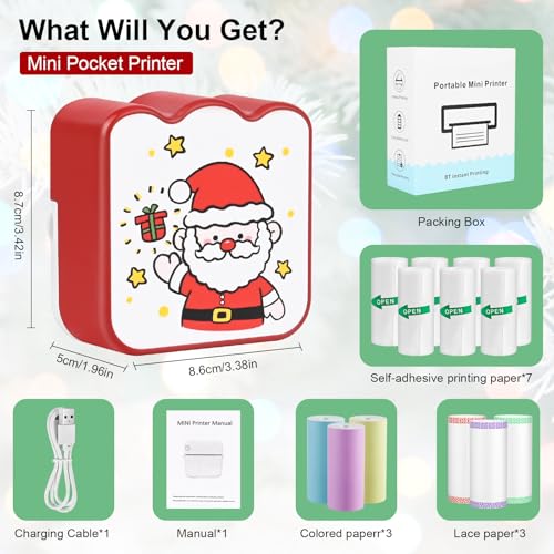 Ambesty Mini Drucker, Weihnachten Mobiler Fotodrucker, Tragbarer Mini Fotodrucker, Wireless Fotodrucker Thermodrucker mit 13 Rollen Druckerpapie, Smartphone Bluetooth Drucker, für Lernhilfe, Journal