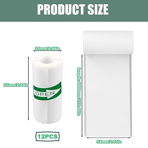 Thermorollen Thermopapier für Kinder Sofortbildkameras Mini Thermal Thermodrucker Papier Selbstklebendes Bedruckbarer Aufkleber Druckerpapier für Mobiler Fotodrucker 57 x 25 mm 12 Rollen