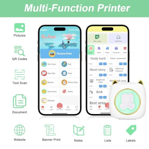 | Features | 【Thermal Inkless Printing Technology】: Der Bluetooth-Thermodrucker verwendet die Thermodrucktechnologie, verwendet keine Tinte, ist bequemer zu bedienen, umweltfreundlicher, unterhaltsamer und praktischer. Thermische Schwarz-Weiß-Druckbilder, damit Ihre Schwarz-Weiß-Fotos elegant und cool aussehen. Hinweis: Wenn der Druck nach mehrmaligem Gebrauch des Fotodruckers nicht klar ist, können Sie den Laserbalken des Druckers mit Alkohol abwischen (der Laserbalken befindet sich im Papierladefach)., 【Bluetooth-Sofortverbindungsdrucker】: Der Drucker verwendet die ''Fun Print''-APP-Bluetooth-Verbindung, es sind keine weiteren komplizierten Vorgänge erforderlich. Befolgen Sie einfach die Verbindungsanweisungen, um schnell eine Verbindung zu einem beliebigen Smartphone herzustellen, und Sie können Ihre Reise zum drahtlosen Schwarzweißdruck beginnen Um das Wachstum Ihres Kindes und die Bedeutung des Reisens festzuhalten, spüren Sie die Freude an schönen Erinnerungen., 【Ausgezeichnete Leistung Bluetooth-Drucker】: Tragbarer Drucker mit super Druckqualität, 200 DPI hoher Auflösung, eingebautem wiederaufladbarem 1200-mAh-Li-Ion-Akku mit hoher Dichte, längerer Akkulaufzeit, hochwertiger Fotodrucker, um schöne Momente besser festzuhalten. Nachdem Sie diese wunderschöne Landschaft gesehen haben, können Sie die verlorene Schönheit in klaren Bildern wiederentdecken., 【Netter und praktischer Sofortdrucker】: Mini-Smartphone-Foto-Thermodrucker, elegantes und einfaches, aber niedliches Aussehen, kompakte und leichte Körpergröße, kann auf Reisen in eine Tasche oder Tasche gesteckt werden, Sie können ihn mitnehmen, einfach jedes Sie aufzeichnen etwas loggen möchte., 【Der beste Mini-Fotodrucker für Geschenke】: Er unterstützt eine Vielzahl von funktionalen Anwendungen und kann Fotos, Aufkleber, Arbeitspläne usw. drucken. Er ist eine ausgezeichnete Geschenkauswahl für Studenten, Paare, Familienmitglieder, Freunde usw. und ein kleiner Assistent, um ein gutes Leben aufzunehmen! |