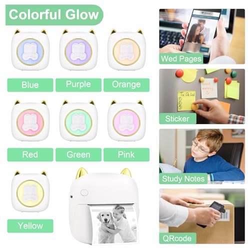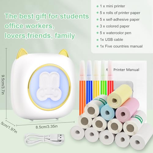 GuKKK Mini Drucker, Mobiler Fotodrucker, Tragbarer Mini Fotodrucker, Wireless Fotodrucker Thermodrucker, mit 13 Rollen Druckerpapie und 5 Buntstifte, Smartphone Bluetooth Drucker, für Liste, Journal