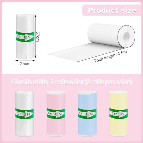 - Enthält 24 Rollen Thermopapier: 9 farbige Rollen (blau, gelb, rosa) und 15 weiße Rollen.