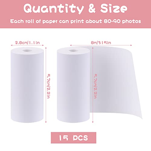 Thermopapier für Kinderkamera 15 Rollen Weiß Thermo Druckerpapier, Rollen Nachfülldruckpapier für Kinderkamera Sofortdruckkamera Fotodrucker Etiketten(57 x 30mm)