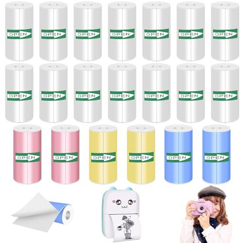 20 Rollen Mini Drucker Sticker, Selbstklebend Thermopapier, Mini Thermal Printer Papier, Thermopapier für Kinderkamera und Selbstklebender Bedruckbarer Aufkleber (57 x 25mm)