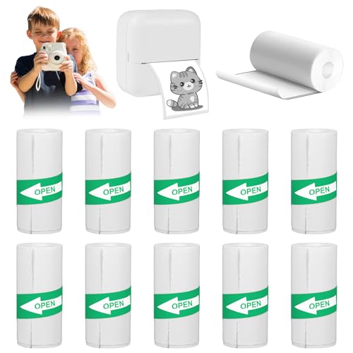 VEQENIFY 10 Rollen Thermopapier Selbstklebende Aufkleber Drucker Mini Thermal Printer Papier 57 x 25 mm Selbstklebend Thermopapier für Mini Mobiler Fotodrucker Mini Instant Drucke Kinderkamera