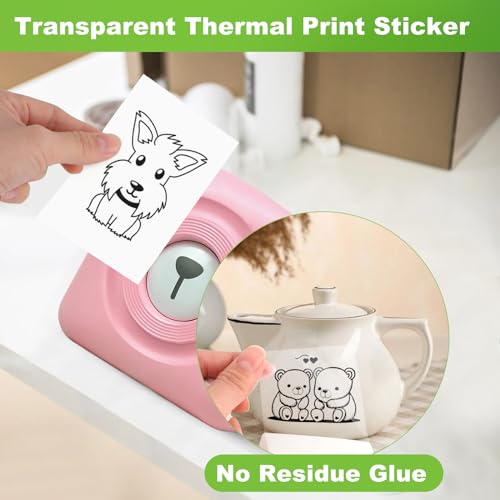 VMUTGA 5 Rollen Thermopapier, Transparent Mini Thermal Printer Papier Selbstklebend Thermo Drucker Papier Bedruckbarer Aufkleber für Kinder Sofortbildkameras Mini Mobiler Fotodrucker (55mm*25mm*3M)