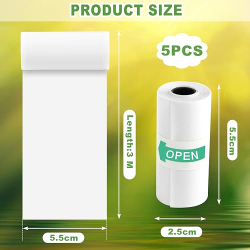 - Enthält 5 Rollen Thermopapier, jede Rolle misst 55 mm x 25 mm und hat eine Länge von 3 Metern.