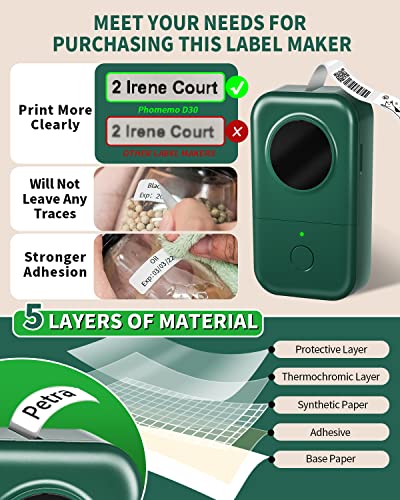 COLORWING D30 Mobiler Bluetooth Beschriftungsgerät, Selbstklebend Etikettiergerät Kompatibel Mit Ios Android, Tragbarer Mini Etikettendrucker Für Zuhause Büro Schule Etikettierung