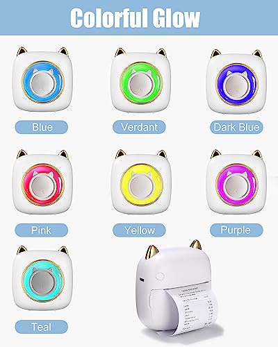 | Features | Multifunktionsdrucker mit LED-Licht:Der multifunktionale Minidrucker ist mit 7 Farblichtern ausgestattet und kann Fotos und Etiketten direkt ausdrucken,ebenso wie Memos,Muster,Listen,Aufzeichnungen,QR und mehr.Die mitgelieferte Anwendung verfügt über verschiedene Schriftarten und Themen,aus denen Sie wählen können,um Ihre unterschiedlichen Bedürfnisse zu erfüllen., Bluetooth-Verbindung:Der Drucker verwendet die App "Fun Print" für Bluetooth-Verbindung,Halten Sie die Netztaste des Druckers 3 Sekunden lang gedrückt,um ihn einzuschalten.die mit Android und iOS kompatibel ist und mit Anweisungen geliefert wird.Folgen Sie einfach den Verbindungsanweisungen,um schnell eine Verbindung mit Ihrem Smartphone herzustellen und Sie können jederzeit und überall drucken., Tragbar und langlebig:Der Drucker verfügt über einen eingebauten,wiederaufladbaren 1200-mAh-Lithium-Ionen-Akku mit einem Ladekabel für Energieeinsparung und hohe Ausdauer,so dass Sie die Etiketten,Bilder und Listen,die Sie benötigen,überall und jederzeit drucken können., Klarer Druck und stabile Leistung:Hochwertige Seiko-Druckköpfe mit 200 DPI Druckschärfe für hochauflösende Druckergebnisse.Leiser,schneller und energieeffizienter mit Thermopapier anstelle von Tinte., Lieferumfang:1 Drucker,5 Rollen selbstklebendes Thermopapier,5 Rollen Thermopapier,3 farbige Papiere,5 farbige Stifte,1 Ladekabel,1 Benutzerhandbuch.Es kann als Geschenk für Ihre Kinder,Liebhaber,Freunde und Familie an wichtigen,besonderen Tagen gegeben werden. |