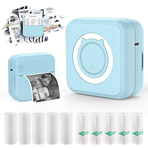 Entdecke den tragbaren Mini-Taschendrucker in Blau! Er druckt Fotos, Etiketten und Notizen kabellos über Bluetooth. Leicht und kompakt, ideal für unterwegs. 10 Rollen Druckpapier inklusive – perfekt für kreative Projekte und zur Organisation!