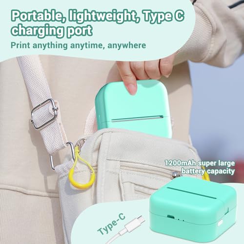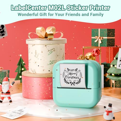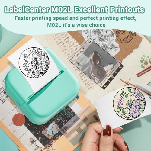 LabelCenter M02L Mini Drucker für Smartphone Sticker Drucker Mini Sticker Drucker Minidrucker Mini Drucker Aufkleber Mini Thermodrucker für Studium,Notizen,Journal,Fotos,mit 1 Rollen Papier,Grün