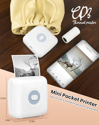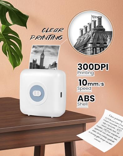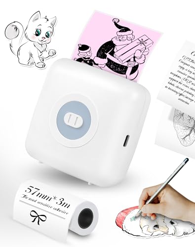 LFPERT Mini Drucker,Thermo Aufkleber Drucker, Taschen Drucker, Bluetooth Etiketten Drucker, Mini Thermodrucker für Weihnachten und, kompatibel mit Android & IOS, Weiß