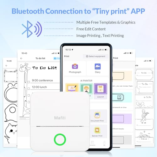 Der tragbare Mini Drucker von Mafiti ermöglicht dir, mühelos Fotos und Aufkleber kabellos zu drucken. Umweltfreundlich und kompakt, passt er in jede Tasche. Perfekt für Beispiele, Geschenke und kreative Projekte – ein Must-have für jeden!