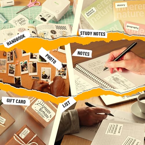Nelko Mini Drucker PM230 Aufkleber Drucker Fotodrucker mit 3 Rollen Etiketten für Smartphone Thermodrucker Bluetooth Etikettendrucker für DIY Erstellung, Studiennotizen, (Weiß)