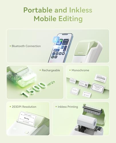 NIIMBOT B1 Etikettendrucker mit 1 Rolle Starterband, Bluetooth Selbstklebendes Etikettiergerät, Beschriftungsgerät Druckgröße 20-50mm Kompatibel mit iOS und Android für Zuhause, Büro (Grün)