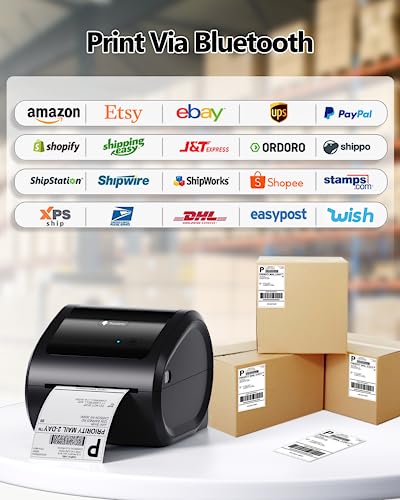 Phomemo D520BT Bluetooth Thermodrucker – DHL Etikettendrucker für Etiketten 4X6, Label Printer für Barcode Versandetiketten Kompatibel mit Ebay,Amazon,Etsy,Shopify, UPS,FedEx etc, Schwarz