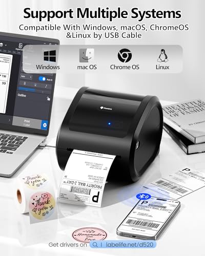 | Features | Verbesserter Bluetooth-Etikettendrucker – Der Phomemo D520BT Etikettendrucker verfügt über den neuesten Thermodruckkopf mit 50% höherer Auflösung, um einen klaren und präzisen Druck zu gewährleisten. Druckgeschwindigkeit bis zu 150 mm/Sek. Unterstützt die Bluetooth-Verbindung mit Smartphones. Installieren Sie einfach die „Labelife“-App, verbinden Sie den D520BT mit der App und drucken Sie mühelos., Unterstützt USB-Konnektivität – Wenn Sie die USB-Verbindung bevorzugen, unterstützt der Phomemo D520BT versandetiketten drucker die USB-Verbindung zu allen gängigen Computersystemen wie Chrome, Windows, Mac und Linux. (Um den Drucker mit einem PC zu verwenden, laden Sie bitte den Treiber von labelife.net/#/d520 herunter)., Vielseitige Kompatibilität – Der Phomemo D520BT Thermodrucker ist mit allen führenden Logistikplattformen wie DHL, FedEx, UPS, USPS, ShipStation, ShippingEasy, Shippo und ShipWorks kompatibel. Er ist auch kompatibel mit E-Commerce-Plattformen wie Amazon, Shopify, Etsy, eBay, Poshmark und mehr., Individuelle Etiketten – Der Phomemo D520BT labeldrucker ist ein vielseitiger Thermodrucker, der es Ihnen ermöglicht, Etiketten in verschiedenen Größen von 1 Zoll bis 4,6 Zoll Breite zu erstellen. Er eignet sich nicht nur für Versandetiketten! Mit unserer App können Sie auch Barcodes, Produktetiketten, Dankeschön-Aufkleber, QR-Code-Etiketten, Unternehmens- oder Namensetiketten und vieles mehr gestalten!, Abschied von teuren Tinten oder Tonern – Der Phomemo D520BT label printer spart Ihnen wertvolle Zeit und Geld und ist die ideale Wahl, um alle Ihre Etikettenanforderungen zu erfüllen!, Professionelles Support-Team -Phomemo D520BT mobile thermo-etiketten-drucker, Unser Support-Team bietet lebenslangen technischen Support, einschließlich Live-Chat, Telefon, E-Mail und sogar Fernzugriff. Wenn Sie Fragen oder Bedenken zu unserem Bluetooth-label printer haben, zögern Sie nicht, uns zu kontaktieren. |