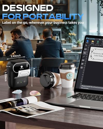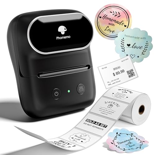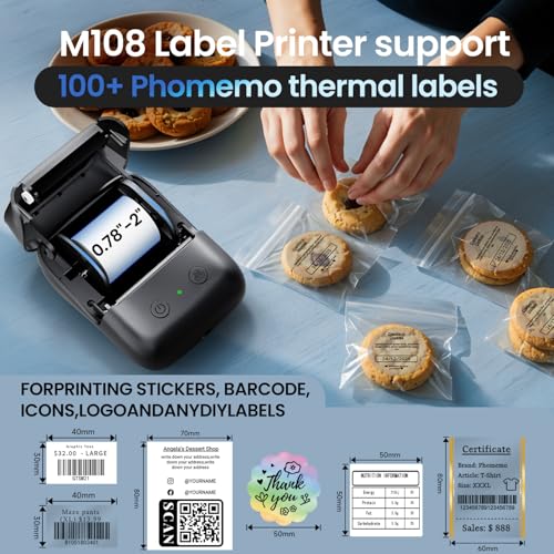 Phomemo Etikettendrucker M108 Bluetooth Etikettendrucker Selbstklebend Thermo Etikettiergerät,Tragbarer Labeldrucker für Barcode,Einzelhandel,Büro,Kompatibel mit Telefonen und PC-System – Schwarz