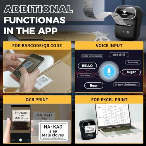 Die dazugehörige App „Print Master“ ist intuitiv gestaltet, was besonders für Benutzer wichtig ist, die keine technischen Kenntnisse haben. Einfache Schritte wie das Auswählen von Etikettengröße und Design machen den Druckprozess sehr reibungslos.