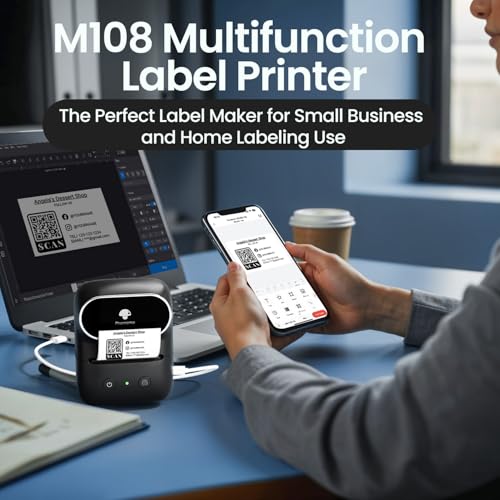 Der Phomemo Etikettendrucker M108 ist ein kompakter und leistungsstarker Etikettendrucker, der mit verschiedenen Geräten wie Smartphones und PCs kompatibel ist. Durch seine drahtlosen Bluetooth-Funktionen und eine benutzerfreundliche App wird das Etikettendrucken zum Kinderspiel. Besonders für kleine Unternehmen, Büroanwendungen oder für den privaten Gebrauch bietet dieses Gerät eine effiziente Lösung.