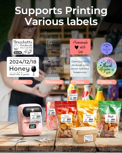 Phomemo M110 Etikettendrucker – Barcodedrucker Mini Bluetooth Etikettendrucker Thermo Etikettendrucker, Tragbarer Drucker, Geeignet für Supermarkt, Einzelhandel, kompatibel für Android&iOS, Rosa