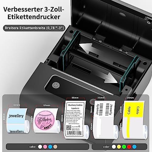 Zusätzlich sorgt die Typ-C-Schnellladung dafür, dass du in kurzer Zeit wieder einsatzbereit bist. Einmal aufgeladen, liefert der Drucker bis zu 36 Rollen kontinuierlichen Druck – ein tolles Feature für stark beschäftigte Benutzer.