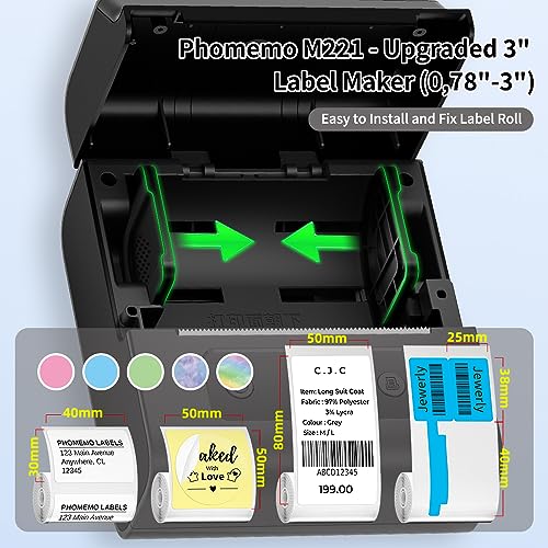 | Features | Phomemo M221 3" Etikettendrucker: Mit verbessertem Druckkopf, druckt schneller und stabiler. Kompaktes Design, Druckbreite from 20 mm to 75 mm (0,78" to 3"). Unterstützt Stapeldruck. Verwendet Thermotechnologie, benötigt keine Tinte oder Toner. Wird mit 1 Rolle 40 x 30 mm Etiketten, 1 Rolle 50 x 80 mm Etiketten und 1 Rolle 70 x 80 mm Etiketten geliefert, Verschiedene Arten von Etiketten und Mehrere Größen: Der Phomemo M221 Label Maker druckt Etikettengrößen von from 20 mm to 75 mm Breite. Er funktioniert mit rechteckigen/runden/transparenten/farbigen/Kabel Etikettenarten. Über 50 Phomemo kompatible Etikettengrößen gewährleisten Flexibilität bei der Verwendung, Vollständige Kompatibilität: Verbindet sich über Bluetooth mit Telefonen und Tablets. Und über USB mit dem PC. Kompatibel mit Android/IOS/Windows. Beginnen Sie mit dem Drucken mit der App Print Master oder der Labelife Software. Bitte folgen Sie der Installationsanleitung der Software, Leistungsstarke APP Print Master: Bietet eine Vielzahl von integrierten Funktionen und Vorlagen. Ein Klick Verwendung: Text, Bilder, Barcodes, QR-Codes, OCR, Formulare, Hunderte von Symbolen und viele vorgefertigte Vorlagen für den kommerziellen, geschäftlichen und privaten Gebrauch. Verbessern Sie Ihre Effizienz. Weitere Vorlagen und Funktionen werden kontinuierlich aktualisiert und verbessert, Breite Verwendung: Phomemo M221 tragbarer Etikettendrucker zum Erstellen von Barcode/Adressen/Kleidungsanhängern/Bildern/Lebensmittel und Postetiketten. Mit einer Batteriekapazität von 2200 mAh, einer Druckgeschwindigkeit von 50 mm/s und schnellem Ladevorgang über TypC ist er für Unternehmen, Büros, Supermärkte, Logistik, Lagerhäuser, Expresszustellung, Bibliotheken, Serviceorganisationen, Krankenhäuser und Elektrizität geeignet |