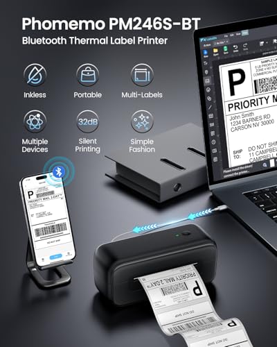 Der Phomemo 246BT Bluetooth Etikettendrucker ist eine innovative Lösung für alle, die regelmäßig Versandetiketten drucken müssen. Mit einer hohen Druckgeschwindigkeit und der Flexibilität von Bluetooth und USB-Anschlüssen ist dieser Drucker besonders für kleine Unternehmen und Online-Händler geeignet, die ihre Versand Prozesse optimieren möchten.