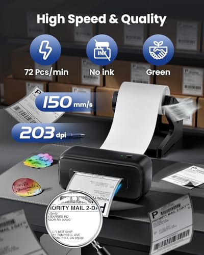 Mit einer Druckgeschwindigkeit von 150 mm/s ist der Drucker extrem schnell und hilft dir, Zeit bei der Etikettenerstellung zu sparen. In einem Test konnte der Drucker 72 Etiketten pro Minute erstellen, was bei hohem Arbeitsaufkommen enorm von Vorteil ist.