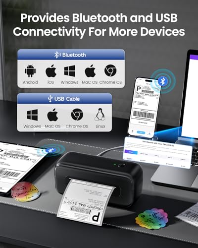 | Features | Bluetooth&USB Etikettendrucker:Phomemo 246BT Versand-Etikettendrucker unterstützt jetzt Bluetooth auf Handys und PCs!Bluetooth-Etikettendrucker ist kompatibel mit Windows,MacOS,ChromeOS,Linux-System.(Hinweis:Alle Geräte können nicht direkt mit Bluetooth verbunden werden,müssen die kostenlose Labelife App verwendet werden.Außerdem,wenn Sie gerne USB-Verbindung wählen,funktioniert diese Thermodrucker-Maschine für alle Computer-Systeme,einschließlich kompatibel mit Chrome OS, Breite Kompatibilität:Thermo-Versand-Etikettendrucker eignet sich für die meisten Plattformen,wie kompatibel mit eBay,Amazon,Easy,Shopify,ShipStation,etc.Außerdem,Porto-Thermo-Etikettendrucker für den Versand von Paketen,verfügbar für Thermo-Etiketten mit einer Breite von 1-4.6".Mit diesem Desktop-Etikettendrucker können Sie Versand-Etiketten,Logo-Etiketten,Dankes-Etiketten und mehr drucken.(Alle Plattformen drucken,bitte denken Sie zuerst daran,Etiketten auf der Plattform herunterzuladen,dann laden Sie Etiketten in den Editor APP zum Drucken), Schnell und klar:Kabelloser 4×6 Versandetikettendrucker,mit 150mm/s hoher Geschwindigkeit,kann 72 Etiketten pro Minute drucken,extrem effizient.Selbst wenn er 12 Stunden ununterbrochen arbeitet,kann der Versandetikettendrucker immer noch Klarheit behalten,sogar kleine Buchstaben,Symbole.(Der Thermodrucker druckt auch Bilder.)Kein Ausschneiden und Einfügen mehr,so dass Sie wertvolle Zeit sparen können, Drucker ohne Tinte&keine Unordnung:Transport-Thermodrucker für Versandetiketten,verwendet Thermotechnologie,die keine espensive Tinte oder Toner,Minimierung der Umweltverschmutzung und Wartungskosten.Darüber hinaus lässt Bluetooth drahtlose Verbindung Sie verabschieden,um chaotisch Desktop,und tief rationalisiert Ihre Geschäftsprozesse.So,Bluetooth-Etikettendrucker für iphone können Sie Gefühle leichter im Geschäft!(Bluetooth kann stabil innerhalb von 5-10m verbunden werden), Professioneller Kundendienst:Phomemo Bieten Sie lebenslange kostenlose/starke Kundenbetreuung(Team)über Live-Chat,Telefon und E-Mail,sogar Unterstützung für Remote-Desktop-Betrieb,müssen Sie sich nicht um das Druckerproblem oder die Einrichtung kümmern,wenn Sie irgendein Problem haben,können Sie uns gerne kontaktieren |