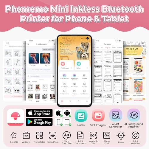 | Features | Lustige Geschenke: T02 mini drucker kann verwendet werden, um Schwarz-Weiß-Fotos zu drucken, um Haftnotizen, Sammelalben, Notizen, Etiketten und etc. zu machen.Diese Aufkleber Maker Maschine kann die Kreativität der Kinder und Eltern-Kind-Aktivitäten zu kultivieren.Mini fotodrucker für phone – muss ein lustiges Geschenk für Kinder, Studenten, Lehrer und DIY Handwerker an Weihnachten, Kindertag oder Thanksgiving-Tag, Print Instantly: Download Phomemo APP → Wireless Bluetooth verbunden die T02 Etikettendrucker → Drucken Sie, was Sie wollen.Totally 10 Sekunden, um die Reise drahtlosen Drucker.Palm Größe Tasche Aufkleber Maker unterstützt alle Smartphones, aber nicht unterstützen Computer-Geräte, Endless Imagination APP: 14 leistungsstarke Funktionen, um Ihre einzigartige Kreation zu berühren.Und Ozeane von Vorlagen, Grafiken, Themen werden kontinuierlich alle 2 Wochen aktualisiert.Sie können auch einige billige bunte Druckpapiere wählen, um Ihre Arbeit reicher und das Leben interessanter zu machen.Vielseitiger inkless label printer fotodrucker, Sparen Sie 1000$ pro Jahr: T02 lablers sticker maker machine mini printer, verwendet das Prinzip der thermischen Bildgebung, um schnell 203dpi HD-Druck zu erreichen.Im Vergleich zu anderen Druckern – keine Notwendigkeit Toner, Tinte und Farbbänder, sparen 1000$ pro Jahr – die inklusiven Taschendrucker brauchen nur umweltfreundliches Thermopapier.T02 kompakte kleine Drucker – Geld sparende Helfer(Paper Specification: 50 mm / 53 mm), Was Sie bekommen: 1x inklusiv tragbare Aufkleber Drucker, 1x Aufkleber Rolle, 1x Netzkabel, 1x Papierhalter Schallwand, 1x Bedienungsanleitung |
