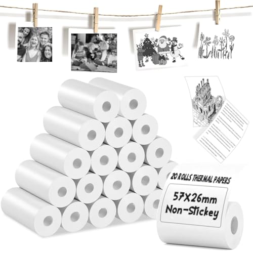 Entdecke 20 Rollen hochwertiges Thermopapier für tragbare Minidrucker. Mit einer Breite von 57 mm und wasserbeständigem Material, ideal für Notizen, Fotos und kreatives Basteln. Tragbar und sofort einsatzbereit – perfekt für unterwegs!