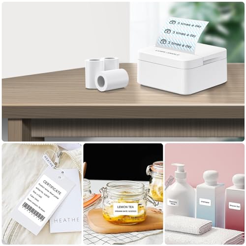 ✨Hochwertiger Etikettendrucker: Der Bluetooth-Etikettendrucker besteht aus hochwertigem ABS+PC-Material, überlegener Qualität, BPA-frei, Thermodirekt-Technologie, keine Tinte für einfaches und schnelles Drucken., ✨Einfach zu bedienen: der Bluetooth-Etikettierer unterstützt iOS, Android und PC, doppelklicken Sie auf den Einschaltknopf, der Drucker wird den QR-Code des angeschlossenen Geräts drucken, fügen Sie das Gerät durch den QR-Code hinzu, scannen Sie den QR-Code, um mit dem Drucker zu verbinden, können Sie den Druckspaß genießen. (Hinweis: Suchen Sie nicht in den Bluetooth-Einstellungen Ihres Mobiltelefons, um den Bluetooth-Drucker zu verbinden)., ✨Portabel UND kompakt: Der Etikettendrucker ist mit einer 1000 mAh Lithium-Batterie ausgestattet, die das Drucken bequem und schnell macht. Mit einer einzigen Ladung kann er bis zu 4 Stunden arbeiten, so dass Sie keine Batterien kaufen müssen. Der Etikettendrucker schaltet sich nach 15 Minuten Inaktivität automatisch ab, um Energie zu sparen., ✨Vielseitig: flexibler Druck von verschiedenen Arten von Etiketten, wie Barcodes, 2D-Codes, Preisetiketten, Namensetiketten und mehr. Weit verbreitet in Supermärkten, Geschäften, Bekleidungsgeschäften, Schmuckgeschäften, kleinen Unternehmen, Büros und Heimorganisationen, ideal für Valentinstag, Halloween, Thanksgiving, Weihnachten und Weihnachtsgeschenke für Familie und Freunde., ✨Paketinhalt: 1*Mini-Etikettendrucker (8,3*8,3*4,1CM), 9*selbstklebende Papierrolle (5,7*2,5CM), erfüllen die Bedürfnisse des täglichen Lebens, der klare Inhalt und der leise Betrieb des Etikettiergeräts bieten eine perfekte Arbeitserfahrung.