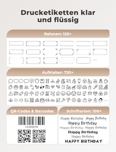 Die umfangreiche Auswahl an Vorlagen in der App erleichtert die Anpassung der Etiketten an individuelle Bedürfnisse und Vorlieben, was den Drucker besonders attraktiv für kreative Nutzer macht.