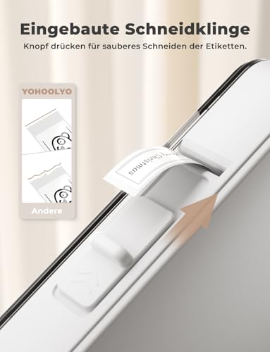YOHOOLYO Etikettendrucker Bluetooth Etikettiergerät Beschriftungsgerät Selbstklebend Labeldrucker Kabelloser mit iOS Android für Zuhause Büro Küche
