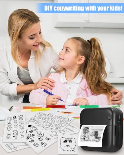 | Features | Sie erhalten: einen Drucker, 5 Rollen weißes Thermopapier, 5 Rollen selbstklebendes Thermopapier, Rollen farbiges Thermopapier und 5 Farbstifte, Einfach zu verwendende Vorlagen kostenlos: Schwarz-Weiß-Druck,super einfach zu verbinden. Erstens müssen Sie die APP herunterladen, zweitens, verbinden Sie die Bluetooth, die massive Vorlagen in der APP sind alle frei zu verwenden, Eye-Care falsche Frage Druck: unser Drucker kann ausdrucken die Wirkung von klaren, und nicht leicht zu verblassen. Tasche falsche Frage Druck, sparen Sie die Zeit der Hand-Kopieren von Notizen, Mini-Design-Drucker: Wir haben den Drucker klein, leicht zu tragen,perfekt für Reisen. Alles, was Sie wollen, die Szene gedruckt werden kann, die Verwendung von USB-Ladung, eingebaute 1200 große Batterien, Abschaltung Null Stromverbrauch, Süßes Geschenk für mehrere kreative Verwendungszwecke: Unser Drucker ist einfach und großzügig in Erscheinung,perfekt als Geschenk für jedermann,vor allem mehr beliebt bei Kindern,ist die beste Wahl für Urlaub Geschenk geben |