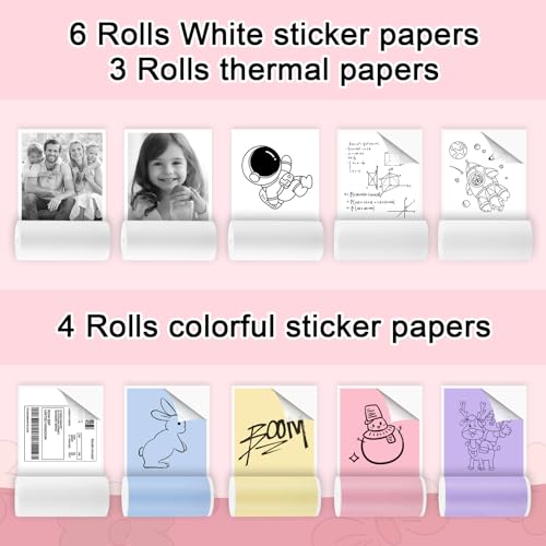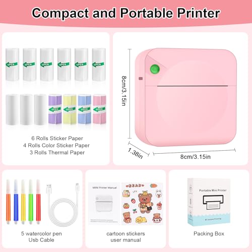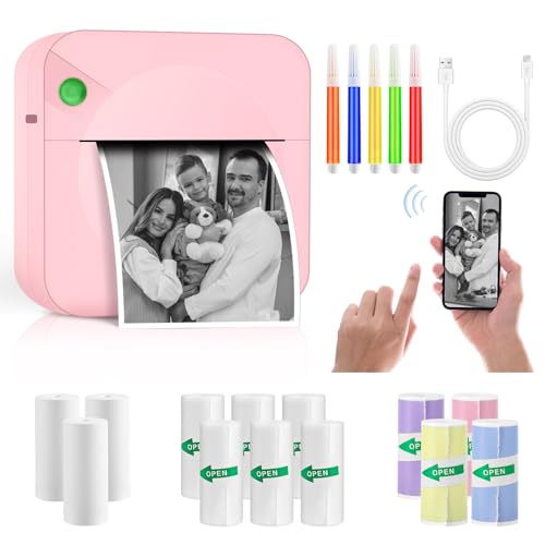 Ambesty Mini Drucker, Mobiler Fotodrucker, Tragbarer Mini Fotodrucker, Wireless Fotodrucker Thermodrucker, mit 13 Rollen Druckerpapie und 5 Buntstifte, Smartphone Bluetooth Drucker, für Liste, Journal