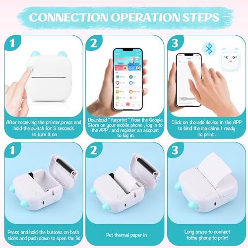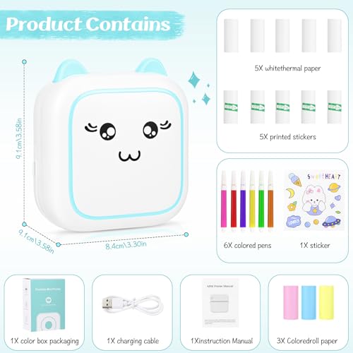 | Features | ✨️【Inkless Thermal Printing】Bluetooth Thermodrucker verwendet Thermodrucktechnologie ohne Tinte, was bequemer, umweltfreundlicher und wirtschaftlicher ist. Thermischer Schwarz-Weiß-Druck macht den Druck von Etiketten und Bildern bequemer., ✨️【Schöner und praktischer Sofortdrucker】Mini-Smartphone-Foto-Thermodrucker, elegantes und einfaches Aussehen, ohne das Niedliche zu verlieren, Körpergröße ist kompakt und leicht, Sie können es in Ihre Tasche oder Tasche setzen, wenn Sie reisen, tragen Sie es mit Ihnen, nehmen Sie auf, was Sie jederzeit und überall aufnehmen wollen., ✨️【Lightweight and Multi-function】 Mini-Smartphone-Thermodrucker mit kompaktem und leichtem Gehäuse, Sie können es in Ihrer Tasche oder Tasche auf Reisen und tragen Sie es mit Ihnen. Unterstützt Text, Bilder, QR-Codes, Etiketten, Fotos, Haftnotizen und viele andere Funktionen, solange Sie aufzeichnen möchten, kann es Ihnen helfen, zu realisieren., ✨️【Exzellente Leistung】Portabler Drucker mit hoher Druckqualität, 200 DPI hohe Auflösung, eingebauter 1200 mAh hochdichter wiederaufladbarer Lithium-Ionen-Akku. Längere Akkulaufzeit, hochwertiger Fotodrucker, besser schöne Momente einfangen., ✨️【Bester Mini-Fotodrucker zum Verschenken】Es unterstützt mehrere funktionale Anwendungen, um Fotos, Aufkleber, Arbeitspläne und mehr zu drucken. Es ist eine gute Wahl für das Verschenken für Studenten, Paare, Familie, Freunde, etc. und ein kleiner Assistent, um das schöne Leben festzuhalten!, ✨️【Lieferumfang】1 Mini-Drucker, 10 Rollen 53mm weißes Fotopapier, 3 Rollen 53mm farbiges Papier, 6 farbige Stifte, 1 Bedienungsanleitung, 1 x Type-C Ladekabel, schöne Verpackung. |