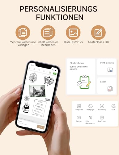 | Features | Einfach zu bedienen: Die benutzerfreundliche Oberfläche und die intuitiven Steuerelemente machen die Erstellung individueller Aufkleber zu einem Kinderspiel, auch für diejenigen, die noch keine Erfahrung haben. Gestalten Sie mit Leichtigkeit und genießen Sie das Ergebnis im Handumdrehen!, Tragbares und leichtes Design: Unser Thermo-Etikettendrucker ist kompakt und leicht, so dass Sie ihn einfach überallhin mitnehmen können. Perfekt für Etikettier- und Personalisierungsprojekte unterwegs., Kundenspezifischer Etikettendruck: Mit unserem Mini-Drucker können Sie Ihre Etiketten und Aufkleber ganz einfach an Ihre Bedürfnisse anpassen. Schließen Sie einfach den Drucker an und lassen Sie Ihrer Kreativität freien Lauf., Thermal Label Printing: Our printer uses thermal printing technology to produce high-quality labels and stickers. 203dpi Clear Printing and with the ability to print up to 10inch/min (4mm/s), you'll finish your labeling projects in no time., Vielseitig und vielseitig verwendbar: Egal, ob Sie Ihr Zuhause oder Ihr Büro organisieren oder einfach nur als Hobby individuelle Aufkleber erstellen, unser Etikettierer ist der perfekte Begleiter. Er ist vielseitig, einfach zu bedienen und kann eine breite Palette von Beschriftungsanforderungen erfüllen. |