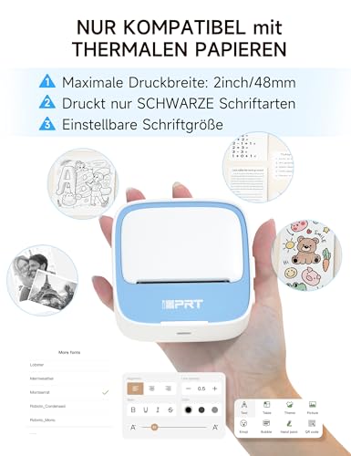 iDPRT Mini Tragbare Aufkleber Drucker,Bluetooth Thermodrucker für Studie Notizen Bilder DIY,Studiennotizen,Fotos (Blue)