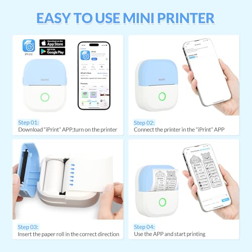mafiti Mini Drucker tragbarer Mini Printer, Mini Fotodrucker Wireless Taschendrucker Thermodrucker Smartphone Bluetooth Drucker Sticker Printer, für iOS und Android, ideal für Studium, Fotos, Präsent