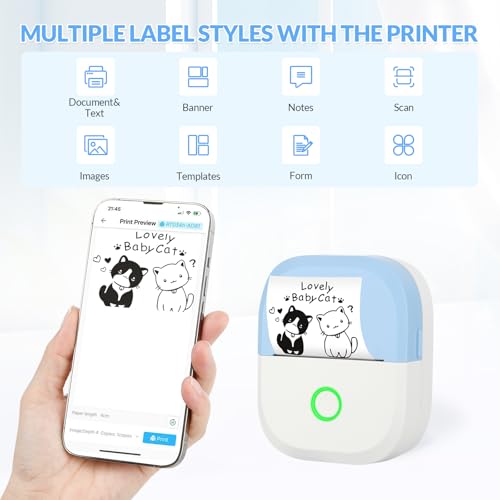 | Features | 【Thermodrucktechnologie ohne Tinte】Der Pocket Mini Printer nimmt thermische Drucktechnologie an, verwendet keine Tinte, ist bequemer zu bedienen, umweltfreundlich, interessant und praktisch. Verwenden Sie OCR-Texterkennungstechnologie und AI PAINTER-Funktion, machen Sie es zu einem großartigen Assistenten in Ihrem täglichen Leben(wenn es ein Druckleeren gibt, liegt es daran, dass das Papier invertiert ist und umgekehrt werden muss, um korrekt drucken zu können)., 【Bluetooth Instant Connection Drucker 】 Bluetooth 5.0 Verbindung, unterstützt die meisten Android und iOS. Laden Sie die Software "iPrint" von Google Play oder APP Store herunter, öffnen Sie den Mini-Drucker, klicken Sie zum Drucken auf "Ausrüstung auswählen" Bluetooth-Verbindung zum Drucker (RT034H-XXXX), und Sie können Ihre drahtlose Schwarzweiß-Druckreise starten. Um die Bedeutung von Wachstum und Reisen von Kindern festzuhalten und die Freude an schönen Erinnerungen zu erleben., 【Ein leistungsstarker Minidrucker】Ein tragbarer Fotodrucker mit ausgezeichneter Druckqualität, 203 DPI hoher Auflösung, eingebauter 1200mAh wiederaufladbarer Lithium-Ionen-Akku mit hoher Dichte und längerer Batterielebensdauer; Der Fotodrucker hat eine Größe von 85*104*40mm und wiegt nur 180g, was nur halb so groß ist wie ein Telefon. Er kann in eine Tasche gesteckt und überall mitgenommen werden., 【Multifunktionale Nutzung】Dieser Mobiler Fotodrucker hat eine breite Palette von Anwendungen, unterstützt Fotodruck, Webseiten-Druck, Druck von QR-Codes, Zwischenablagen, Zeitschriften, Speichertags, Listen, Memos und Fehlerprobleme. Geeignet für Büros, Studenten, Kinder, Familien und Label-Enthusiasten, ist es auch ein gutes Präsent., 【 Papierformat 】 Der Drucker für Handy ist kompatibel mit drei Aufklebergrößen: 57*26mm, 57*28mm und 57*30mm. Die Verpackung enthält zwei Antihaft-weiße Papierrollen und 2-Stick-weiße Papierrollen (57x26mm,6m). Der Aufkleber-Drucker eignet sich nicht nur für Antihaft-weißes Papier, sondern auch für klebriges Selbstklebepapier und farbige Papierbögen., 【Perfektes Geschenk】Der Sticker Printer unterstützt mehrere funktionale Anwendungen, wie das Drucken von Fotos, Aufklebern, Arbeitsplänen usw. Elegant, einfach und niedlich Aussehen. Es ist eine ausgezeichnete Geschenkwahl für Studenten, Paare, Familie, Freunde und mehr., 【Was wirst du bekommen】1 Tintenloser tragbarer Minidrucker, 5 Aufkleber Rolle, 1 Netzkabel und 1 Benutzerhandbuch; Wenn Sie Fragen haben, kontaktieren Sie uns bitte umgehend und wir bieten zufriedenstellenden Service, um Ihr Problem zu lösen. |