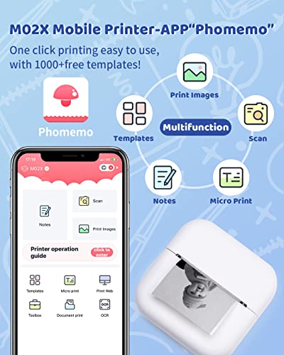 Phomemo M02X Mini Drucker – Sticker Drucker, Mini Thermo Aufkleberd Ducker Thermo Fotodrucker Tragbarer Bluetooth Drucker, kompatibel mit Android und iOS, für Tagebuch, Memo, Studiennotizen Weiß