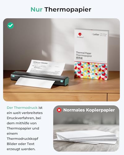 | Features | Mobiler Drucker – Der Thermodrucker A4 eignet sich für alle Szenarien, die mobiles Drucken in Business/Reise/Auto/Büro/Schule erfordern. Drucken Sie zum Beispiel Rechnungen, Prüfungsunterlagen, Listen und Verträge vor Ort, Tragbares Drucken– Phomemo M08F ist ein mobiler Drucker, kompakt und tragbar, 80 % kleiner in Größe und Gewicht als herkömmliche Drucker. M08F Tragbarer Drucker mit 10 Blatt A4 Thermopapier, Führende Portable Printer – Phomemo M08F reisedrucker verwendet die Thermodrucktechnologie, die keine Tinte, keinen Toner und kein Farbband mehr benötigt (Empfohlen, nach “Phomemo A4 Thermopapier” zu suchen, um es in den Einkaufswagen zu legen, verwenden Sie die Original-Verbrauchsmaterialien, um klarer zu drucken), Hohe Kompatibilität – Phomemo M08F mobiler drucker a4 für unterwegs unterstützen die drahtlose Bluetooth-Verbindung von IOS- und Android-Smartphones/Tablets sowie die USB-Verbindung für Mac OS, Windows und Chrome. (NUR PC unterstützt Verbindung über USB-Kabel), Große Akkukapazität – Phomemo M08F portable printer Bluetooth thermal printer mit eingebautem 1200-mAh-Akku. Kann 120 Blatt A4-Thermopapier kontinuierlich bedrucken |