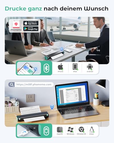 Der Phomemo M08F mobile Drucker ist die perfekte Lösung für alle, die viel unterwegs sind und dennoch die Möglichkeit haben möchten, ihre Dokumente und Unterlagen jederzeit ausdrucken zu können. Klein, kompakt und leistungsstark, bietet dieser Drucker eine innovative Alternative zu herkömmlichen Druckern. Der M08F unterstützt A4 Thermopapier und verbindet sich einfach per Bluetooth mit deinem Smartphone oder Tablet, was ihn zu einem idealen Gadget für Geschäftsreisende und Studenten macht.