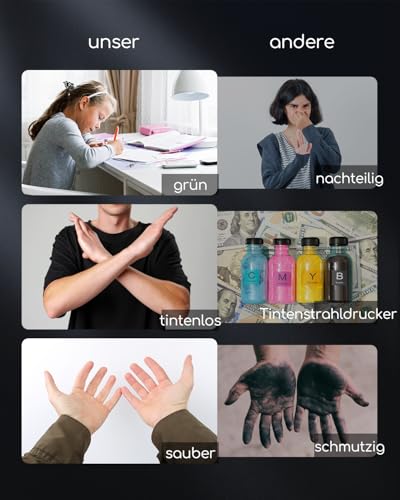- Keine Verbrauchsmaterialien wie Tinte nötig