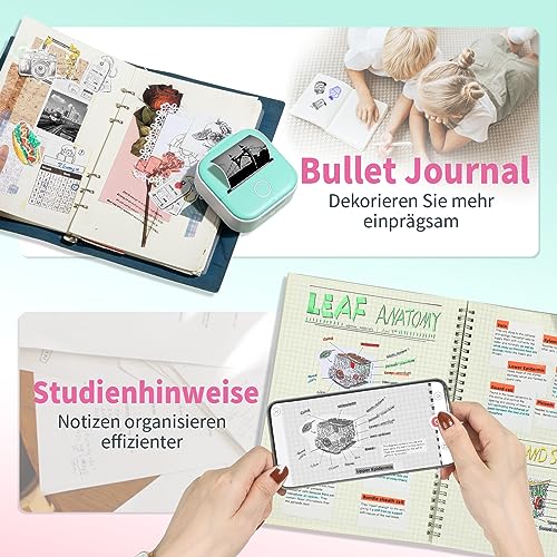 | Features | Minidrucker mit 3 Papierrollen – Der Minidrucker T02 wird mit 3 Papierrollen geliefert, ist also preiswerter und ermöglicht es Ihnen, den Spaß sofort zu genießen. Der kleine Drucker unterstützt außerdem fast 50 Arten von Thermopapier, was das Drucken interessanter macht und für verschiedene Zwecke geeignet ist, Geeignet für verschiedene Verwendungszwecke – mit diesem Mini-Drucker können Sie Memos, To-Do-Listen, Studiennotizen, Bullet Journal, Bilder usw. für Studium, Aufzeichnung, Geschäft, Markierung und Unterricht drucken. Der Mini-Drucker eignet sich für Studenten, Kinder, Lehrer, Mütter oder andere Personen, Tragbar, im Lieferumfang enthalten, wiederaufladbar – Sie können den Handydrucker in Ihrer Tasche mitnehmen und alles jederzeit und überall ausdrucken. Der kleine Drucker ist wiederaufladbar, so dass Sie sich keine Gedanken über das Ladeproblem machen müssen. Die Thermotechnologie bedeutet, dass Sie keine Tinte nachfüllen müssen, sondern nur Thermopapier brauchen, und dann können Sie drucken, Große Auswahl an Geschenken – der tragbare Mini-Drucker ist ein tolles Geschenk für den Schulanfang, Halloween, Thanksgiving, Weihnachten, Neujahr usw. Der Mini-Aufkleberdrucker hat eine exquisite Verpackung und eine leistungsstarke, lustige Funktion, die Leute, die den Mini-Thermodrucker geschenkt bekommen, werden glücklich sein, Einfach zu bedienen – Der Bluetooth-Drucker ist einfach zu bedienen. Laden Sie die App herunter, verbinden Sie Ihren Taschendrucker mit der App und schon können Sie drucken. Der tragbare Drucker unterstützt sowohl Android als auch iOS, so dass Sie sich keine Sorgen um die Kompatibilität machen müssen. Die App bietet außerdem viele lustige Vorlagen, die Sie erkunden können! Viel Spaß beim Drucken |