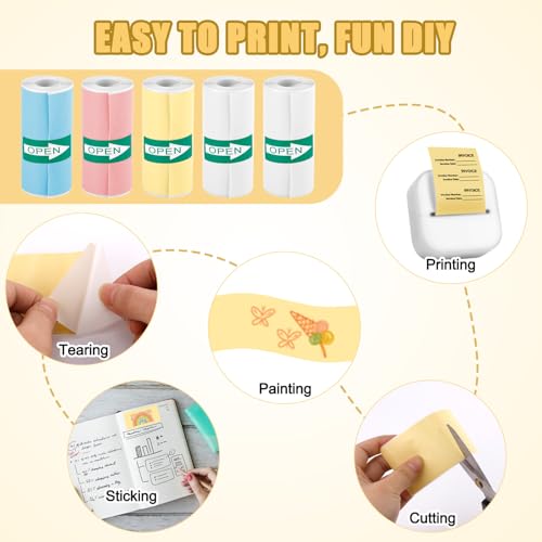 | Features | Verpackungsliste: Sie erhalten 10 Rollen Thermalaufkleberpapiere im Paket, insgesamt 4 Farben, 4 Rollen für weiße Farbe, 2 Rollen für blau, gelb, rosa Farben.Ausreichende Menge und Farben können Ihren täglichen Gebrauch und Bedürfnissen erfüllen., Premium-Material: Diese Mini-Druckeraufkleberpapiere bestehen aus von großer Qualität, selbstklebendem Papier, sodass sie langlebig, wasserdicht und glatt, ohne BPA mit starker Kleberfähigkeit, die nicht leicht zu verblassen oder zu brechen ist, für eine lange Zeit aufbewahrt werden kann., Einfach zu bedienen: Beginnen Sie zunächst die Druckerabdeckung.Setzen Sie das Thermalpapier als nächstes in den Drucker ein und ziehen Sie etwa 2 cm Papier heraus.Schließen Sie danach die Druckerabdeckung.Schließen Sie die App zum Drucken an.Bitte stellen Sie sicher, dass die Papierrolle korrekt installiert ist, da eine falsche Installation zu Druckproblemen führt., Größen und Kompatibilität: Unsere selbstklebende thermische Druckerpapiere messen etwa 5,5×2,5 cm, die Gesamtlänge beträgt 3 m.Sie sind mit einem 57 -mm -Mini -Papierdrucker und den meisten Kinder -Instantkameras kompatibel.Bitte überprüfen Sie die Größe vor Ihrer Bestellung sorgfältig., Breite Anwendung: Sie können verwendet werden, um Aufkleber, To-Do-Listen und Drucken Etiketten zu drucken.Sie können auch alles auf das lebendige Aufkleberpapier ausdrucken, es herausschneiden, Ihre eigenen Farben hinzufügen und es überall hin, wo Sie für die Dekoration möchten. |