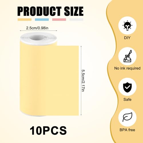 10 Rollen Selbstklebendes Thermodruckerpapier, 5,5×2,5cm Thermodruckpapier Rollen Tragbares Thermodruckerpapier für Minidrucker und Sofortbildkameras für Kinder (4 Farben)