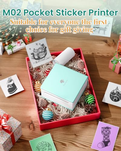 Phomemo M02 Taschendrucker 3 Papierrollen enthalten-Mini Drucker Tragbarer Fotodrucker mit wiederaufladbarem Akku und USB-Kabel kompatibel mit Android & iOS für Journal Study Painting, Grün