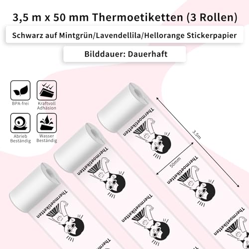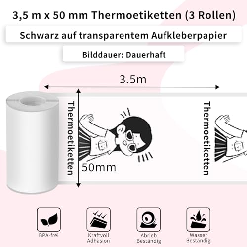 【100% Kompatibilität】: Diese Aufkleberpapierrollen sind speziell für den Mini-drucker T02/M02X/M02L/M02S entwickelt. Sie gewährleisten eine nahtlose Integration und hervorragende Druckergebnisse in Schwarzweiß-Thermodruck, 【Hervorragende Druckqualität】: Ausgestattet mit einer glatten Oberfläche und Beschichtung, liefert unser transparentes Thermopapier ideale Druckergebnisse für klare Texte und Bilder in Schwarz und Weiß. Mit einer Breite von 50mm und einer Gesamtlänge von 3,5m Durchmesser 28mm pro Rolle, erfüllt es alle Ihre Druckbedürfnisse mit Präzision und Schärfe, 【Starker und langlebiger Klebstoff】: Die selbstklebende Eigenschaft unseres Thermopapiers ermöglicht es Ihnen bequem, Ihre eigenen Aufkleber zu gestalten. Es haftet sicher auf einer Vielzahl von Oberflächen, einschließlich Papier, Metall und Kunststoff, und bietet eine dauerhafte Anwendung ohne Ablösung oder Verschlechterung, 【Langzeitkonservierung】: Unser Thermopapier bietet eine ausgezeichnete Langzeitkonservierung für gedruckte Inhalte. Mit Eigenschaften wie Wasserdichtigkeit, Ölfestigkeit, Reißfestigkeit und Kratzfestigkeit, schützt unser Papier Ihre künstlerischen Kreationen vor Zerstörung und erhält ihre Schönheit und Integrität für eine lange Zeit, 【Benutzerfreundliches Easy-Peel-Design】: Unser Thermopapier verfügt über kleine Lücken auf beiden Seiten der Oberfläche, die das Abziehen vom Rückpapier erleichtern. Der hochwertige Klebstoff bleibt trocken und klebrig, um den Drucker vor Papierstaus oder Druckfehlern zu schützen, was eine problemlose und effiziente Nutzung gewährleistet, 【Vielseitige Anwendungen】: Egal, ob Sie individuelle Aufkleber, Etiketten, Kunstprojekte oder Notizen erstellen möchten, unser transparentes Thermopapier ist eine perfekte Wahl. Es ist ideal für den privaten, professionellen und pädagogischen Gebrauch und ermöglicht Ihnen, Ihre Kreativität in hochwertige Drucke umzusetzen, 【Paketinhalt】: Jedes Paket enthält 3 Rollen transparentes Thermopapier, genug, um Ihre langfristigen Druckanforderungen zu erfüllen. Mit diesem großzügigen Angebot können Sie sicher sein, dass Sie immer genug Papier zur Hand haben, um Ihre kreativen Ideen zum Leben zu erwecken
